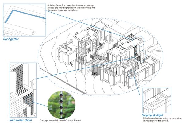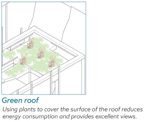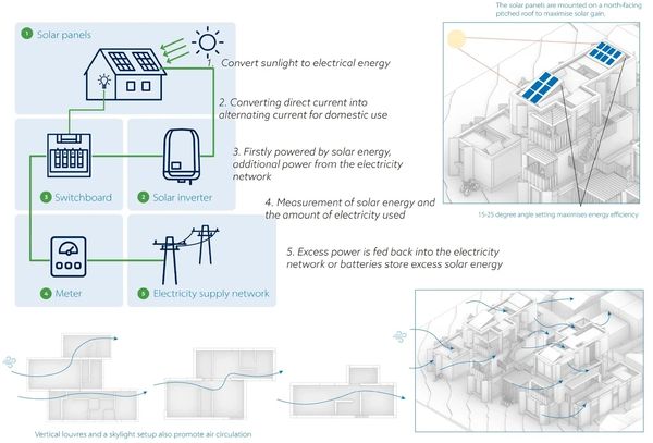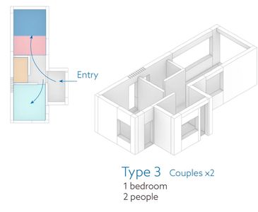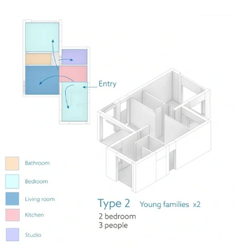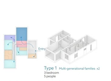 Each of the three dwelling types corresponds to a differenttype of household. Meets the housing needs of 20 people inthe community.